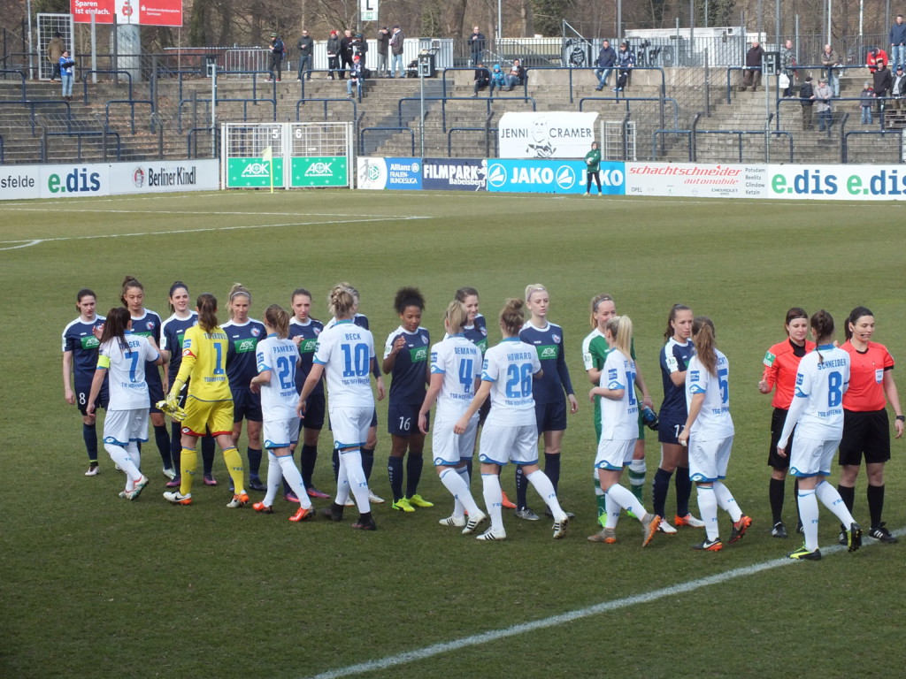 In der Startelf stand auch ein Potsdamer Geburtstagskind: Wibke Meister. Die Schiedsrichterin ließ es sich aus diesem Anlass nicht nehmen, Wibke persönlich mit einer sonnengelben Geburtstagkarte zu beglücken. Auch die Fans garnierten die Stadionmoderation lautstark mit einem „Happy-Birthday“-Gesang.