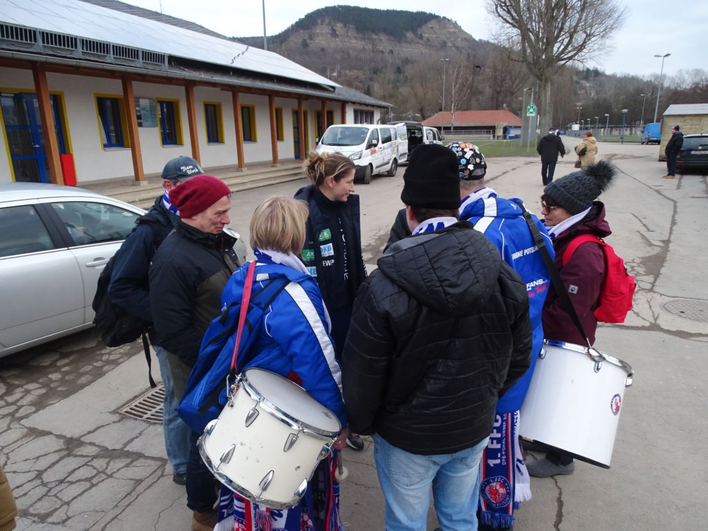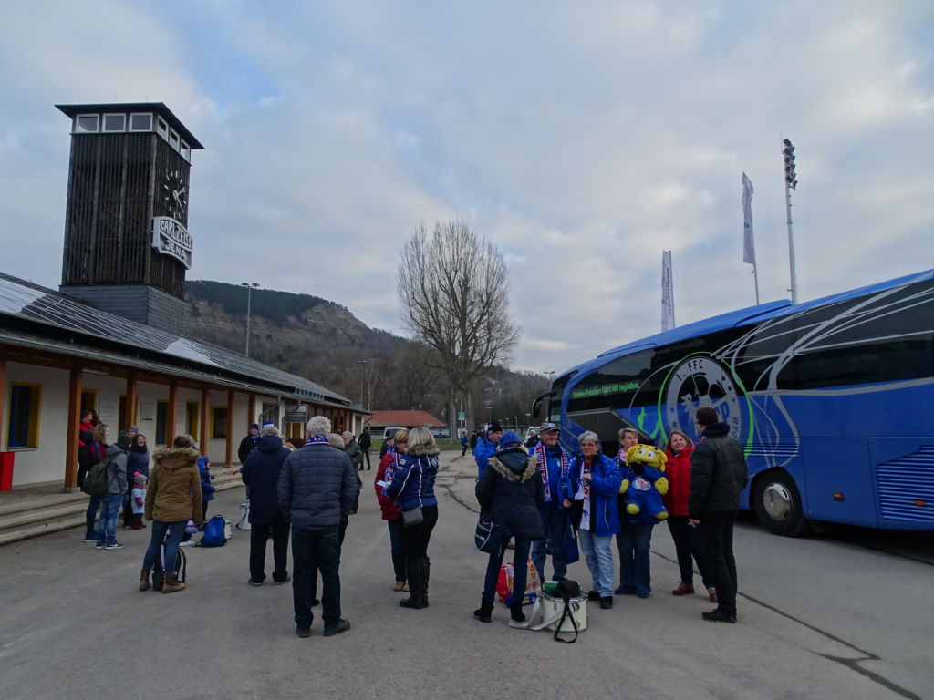 Schön war es wieder in Jena. Eine kurze Anreise galt es zu genießen, weshalb auch die längere Fanbus-Version prall gefüllt und ausgebucht war. Weit nach Sonnenaufgang, gegen 9.00 Uhr, startete der schwarze Bus mit blau-weißem Inhalt nach Thüringen – zu den heißgeliebten Rostbratwürsten, die diesmal auch in ausreichender Zahl die preußischen Münder stopften. Und kurz vor dem „Tatort“ kehrte der Bus in den Heimathafen zurück. Also ein netter Sonntagsausflug – mit netten Erlebnissen und noch netterem Spielausgang.