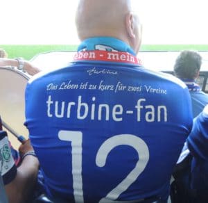 In den alten Zeiten parkte ein Fanbus aus Frankfurt vorm „Karli“. Heutzutage steht eine Handvoll Frankfurter Fans, ausstaffiert mit zartem Glöckchen und einem Trömmelchen, im Stehplatzbereich. Der 1.FFC Frankfurt leidet, der Manager Siegfried Dietrich vermutlich noch mehr. Ein Liebäugeln mit dem Anschluss an den Männerverein „Eintracht Frankfurt“ kann aktuellen Pressemeldungen entnommen werden.