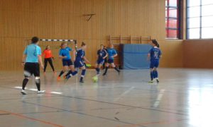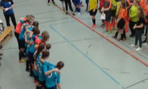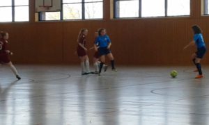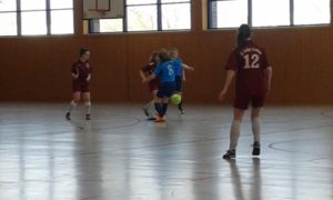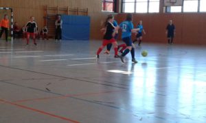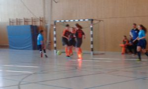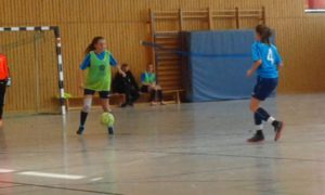 Im zweiten Gruppenspiel traf unsere U15 dann auf den 1.FFC Fortuna Dresden. Ein Verein, dessen jeweilige Teams mir bei zwei vorherigen Turnieren mir vor Allem durch ihre Kampfkraft positiv auffielen. Das bekamen auch unsrere Turbinen zu spüren und es wurde ein hartes Stück Arbeit – aber auch ein abwechslungsreiches Hin und Her, gekennzeichnet von hohem Tempo. Nach einer Pauli-Chance nach Zwergie-Ecke musste Jenny im Gegenzug selbst zur Ecke klären, wie sie auch in der 5. Minute glänzend reagierte, als eine Dresdenerin frei vor ihr auftauchte. Nachdem Jule noch eine Chance nach einem Solo hatte, sah es nach einem 0:0 aus. Na ja, immerhin hatten die Fortunen in ihrem ersten Spiel auch dem „Effzeh“ mit 1:1 einen Punkt abgerungen. Aber in der Halle kann es schnell gehen und es kam die Schlußminute: traumhaft, wie Pauli und Zwergie mehrmals Doppelpass spielten und Zwergie dann zum 1:0 vollendete.