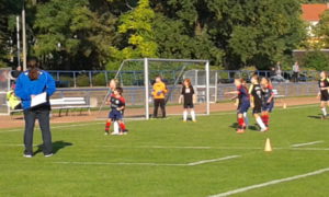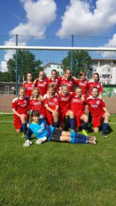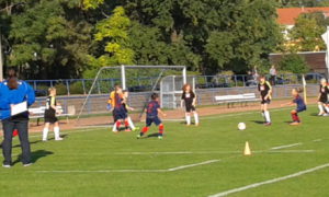 In Hälfte 2 das selbe Bild mit Angriffen, wo das Zuschauen Spaß machte. Aber die Gäste hatten sich jetzt besser darauf eingestellt und konnten den finalen Pass in die Spitze des Öfteren blocken. Nicht aber in der 54. Minute, als Leo herrlich von rechts außen nach innen zog und die links völlig freistehende Lulu bediente – 3:0. Nachdem im weiteren Verlauf Leo freistehend im letzten Moment geblockt werden konnte und die Gäste 2x mit Fernschüssen Kristin prüften, zog Shanice in der 74. von der Strafraumgrenze ab – 4:0. Aber in der 80. leistete sich unsere Abwehr den leider obligatorischen Aussetzer: bei einer Gästeecke standen im 16er zwei Gegnerinnen völlig frei. Diese behinderten sich noch gegenseitig und trotzdem konnte dann eine von ihnen ungehindert auf 1:4 verkürzen. Hmm, dumm gelaufen ! Nachdem Maja in der 84. Minute völlig frei auf die Keeperin zulief und diese aber nur anschoß bedeutete das 4:1 auch den Endstand.