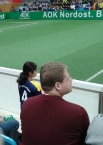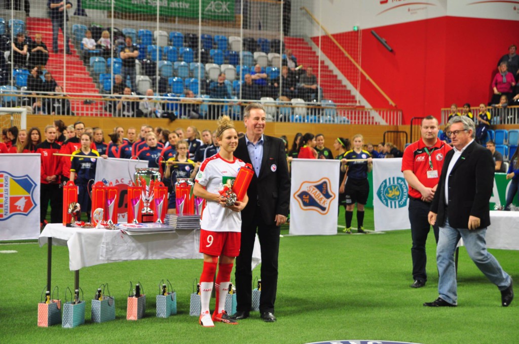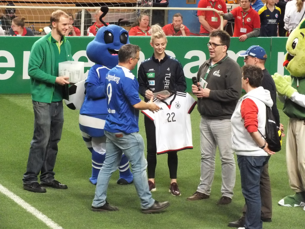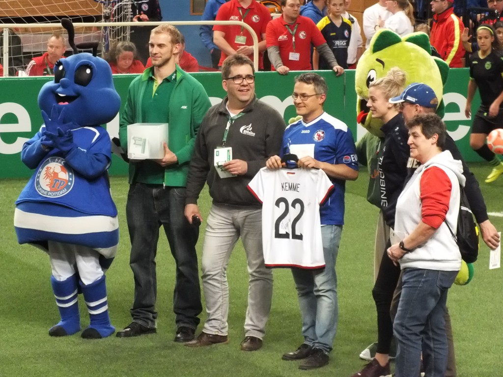 Der Hauptsponsor AOK Nordost präsentierte sich engagiert und ermöglichte unzählige Autogrammstunden mit Spielerinnen verschiedener Vereine und verloste ein Nationaltrikot von Tabea Kemme, die übrigens während des Turniers grippig das Bett hütete. Der glückliche Gewinner war Marco Junghanns, ein treuer und engagierter Fan. Glückwunsch!