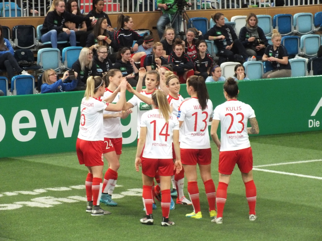 Und überhaupt klatschten sich beim Einzug der Mannschaften zur Siegerehrung die Spielerinnen aller Vereine mit zahlreichen Fans ab. Frauenfußball ist Herzenssache – ganz besonders authentisch in Potsdam!