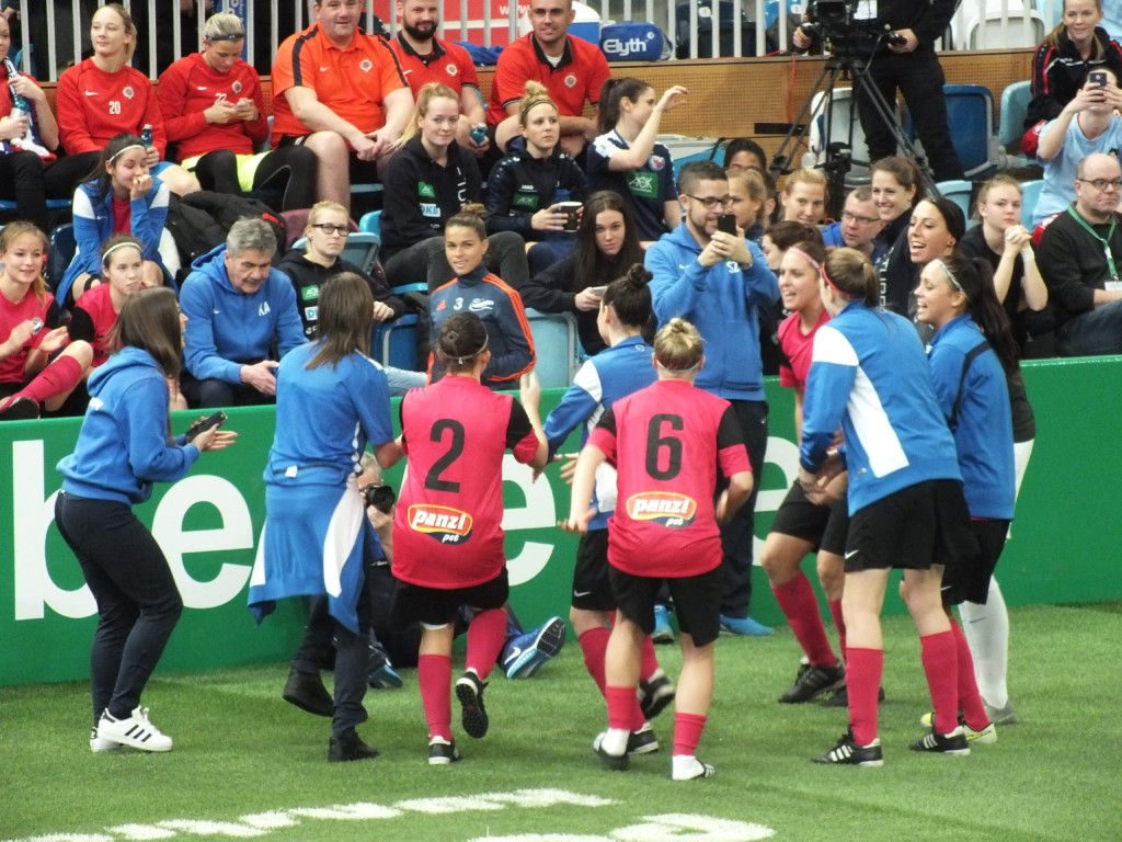 MTK-Spielerinnen beobachten das Neunmeterschießen