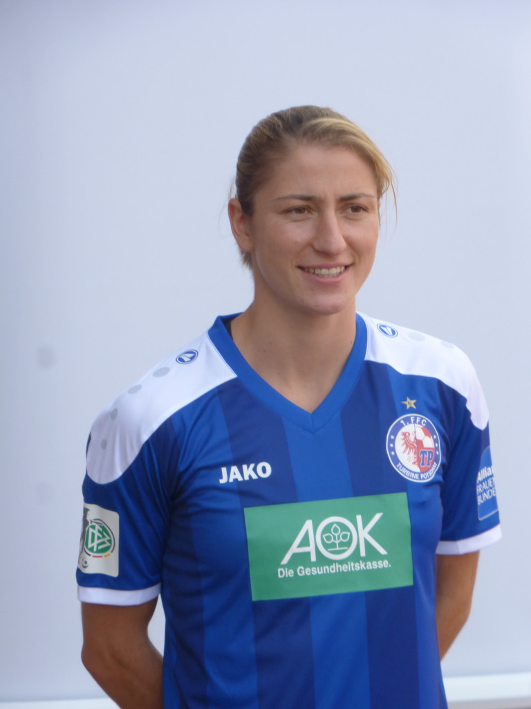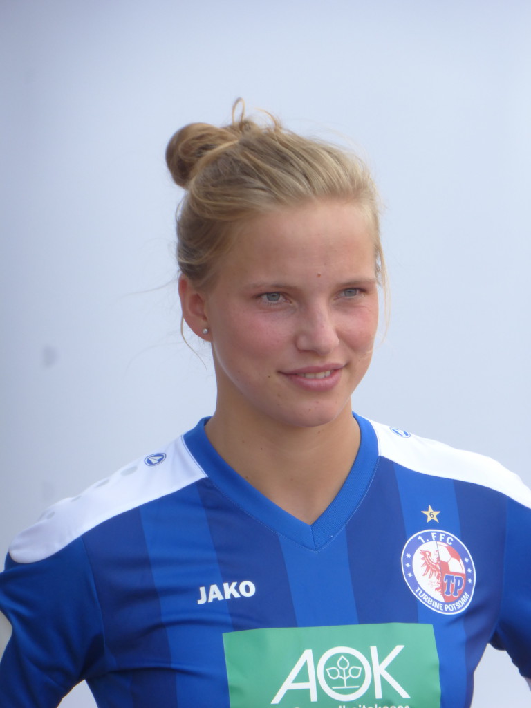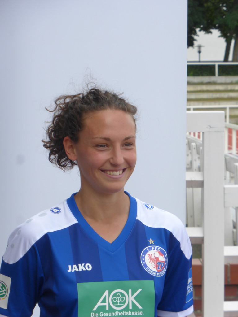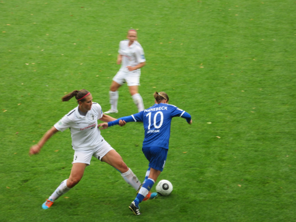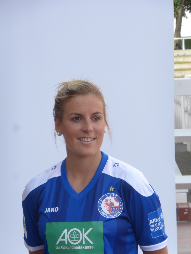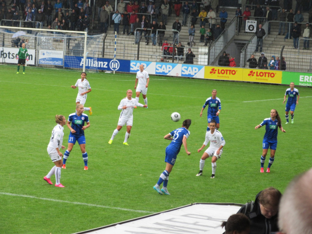 Es gibt im neuen Team mindestens eine Spielerin, die ihr Wort hält: Svenja Huth, der die Stadt Potsdam gefällt und sich gut hier eingelebt hat, erlöste die Mannschaft und die Fans in der 67.Minute mit einem Stocher-Tor aus waagerechter Position.