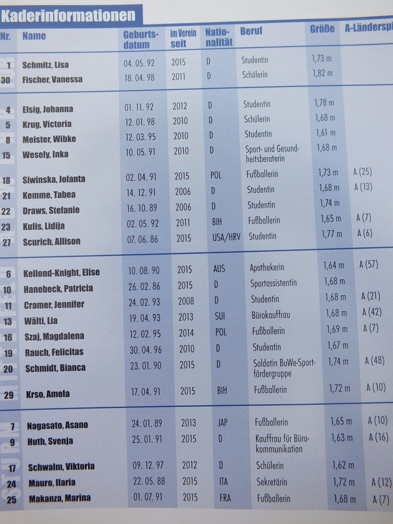 Die Publikation wird in Kürze noch um das Funktionsteam und die fehlenden Spielerinnen ergänzt.