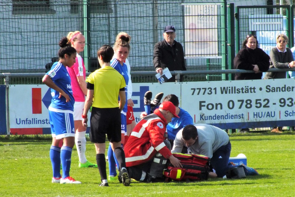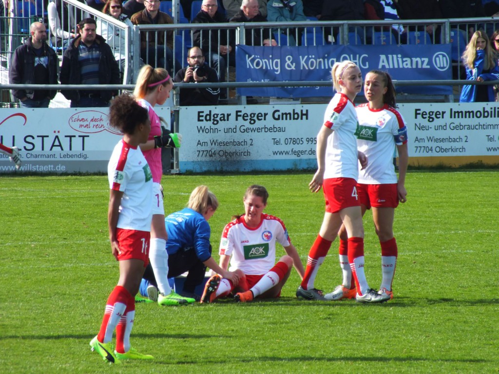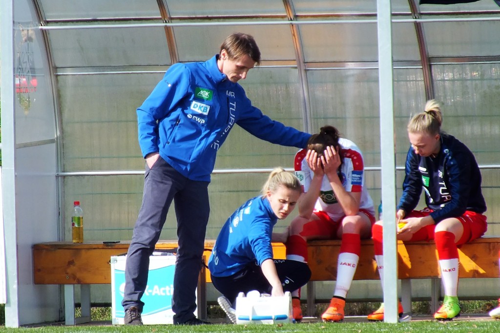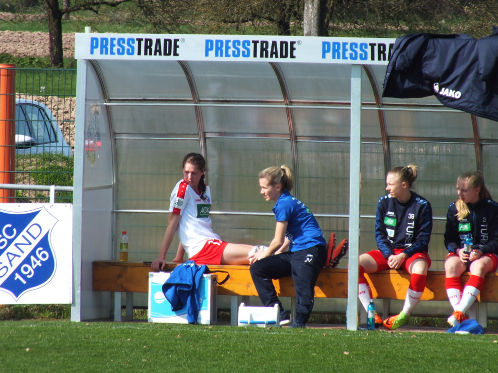 Die erste Halbzeit war auch von Tragik geprägt: Inka Wesely verletzte sich nach wenigen Minuten am Knie, Eseosa Aigbogun fand im Sandner Rasen keinen Freund und musste ebenfalls verletzungsbedingt ausgewechselt werden. Auch bei den Gastgebern gab es eine Spielunterbrechung mit 112-Einsatz, da die künftige Bayern-Spielerin Damnjanovic bewusstlos am Boden liegen blieb. Aber sie konnte erstaunlicher und erfreulicher Weise danach weiterspielen.