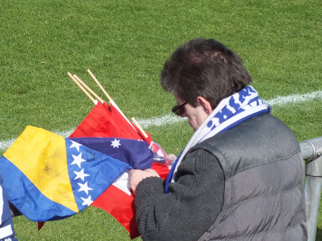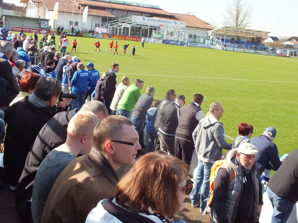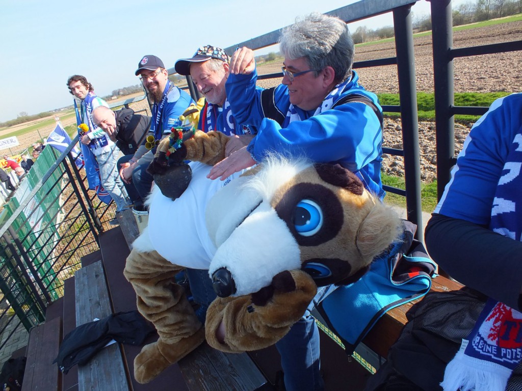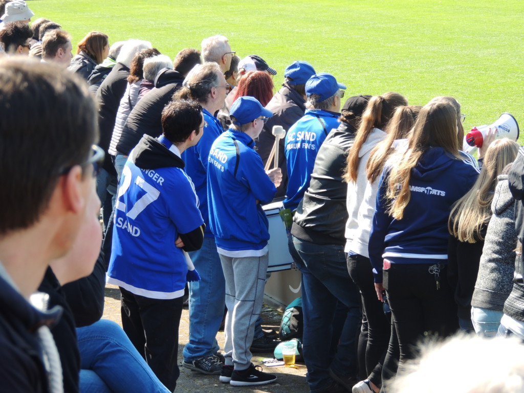 Am Sonntagmorgen ging die Frühlingssonne eine Stunde später auf (Umstellung auf Sommerzeit) und schien unermüdlich. Bestes Fußballwetter! Jacke aus, Sonnenbrille auf und die Dorfkultur am Spielfeldrand beäugend. Die Sandner Hymne „Ich bin ein Dorfkind und darauf bin ich stolz… und auch aus gutem Holz“ verstärkte das heimelige Wohlgefühl und die Vorfreude auf dieses Bundesliga-Match.
