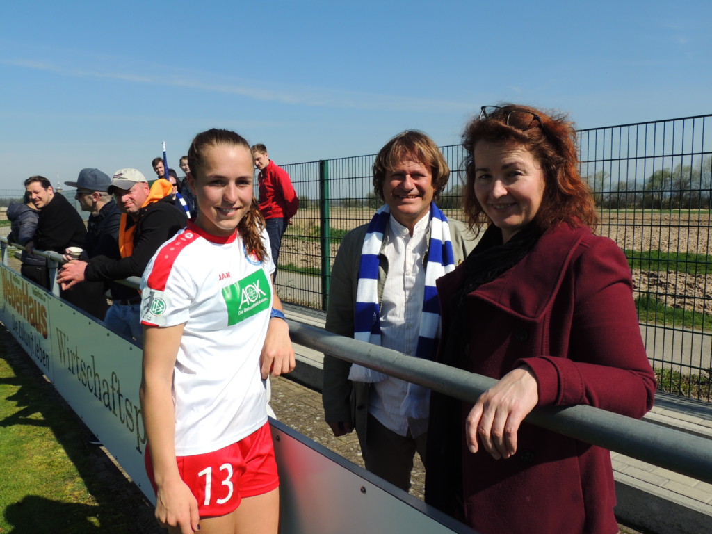 Die Halbzeitpause wurde herbeigesehnt, um Luft zum Atmen und Raum zum Denken zu ermöglichen, denn durch die beiden verletzungsbedingten Ausfälle war die preußische Spielordnung etwas ins Wanken gekommen. Mit einem 0:0 ging es zum Pausieren in die Kabinen. Und Steffi Jones, die es sich als Bundestrainerin vorgenommen hatte, mit ihrem dunkelbraunen, schnittigem Mercedes jeden Verein einmal in der Saison zu besuchen, gab sich interviewend die Ehre. Im Mai wird sie bei der Begegnung: Turbine gegen Wolfsburg zu Gast im „Karli“ sein.