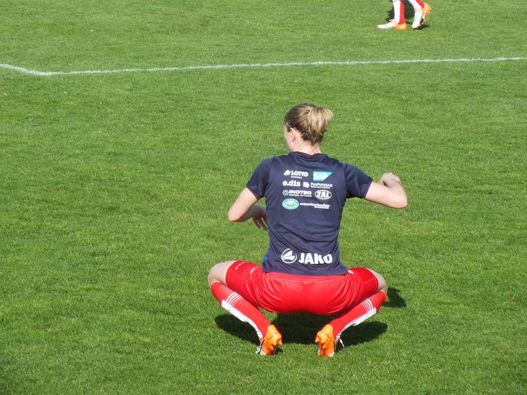 Die Fans zählten eifrig den Ecken-Countdown herunter, beginnend bei 19 – „Nur noch achtzehn“, „nur noch siebzehn“ usw. – bei „nur noch zehn“ fand das Spiel ein Ende. Aber vorher passierte noch das zweite Unglaubliche an diesem Wochenende: Ulla Draws, für Inka Wesely eingewechselt, erlöste als „Aushilfskraft“ die „Torbienen“ und deren Fans in der 81. Minute. Ein schöner, tabellenrettender Spitzentreffer. Verdient hatten es die Potsdamerinnen allemal, denn in der zweiten Halbzeit waren sie die klar spielbestimmende Mannschaft. Trotzdem Erlösung pur!
