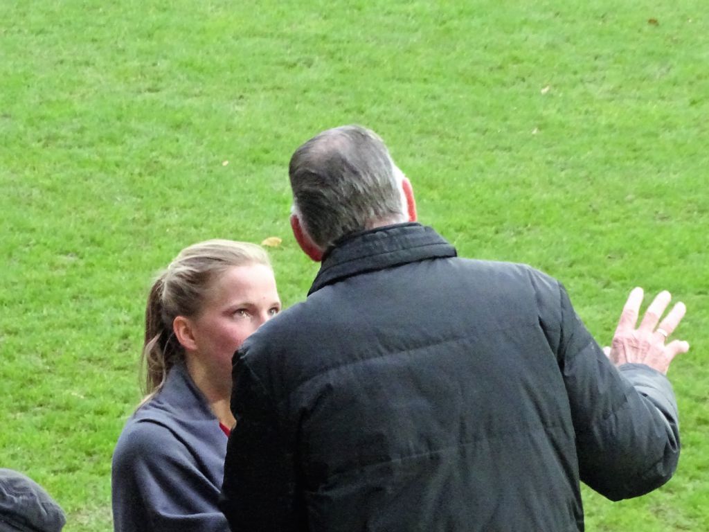 Nachdem die Co-Trainerin Josephine Schlanke (aus Versehen) ihren Handschuh aufs Spielfeld geworfen hatte, entfachte sich das Duell gegen Bayern München. In den ersten 20 Minuten entspann sich dieses Duell leider nicht auf Augenhöhe, den Bayern stand, Bayern spielte, Bayern bestimmte. Und weil das so war, zeigte die Schiedsrichterin In der 8. Minute auf den Elfmeterpunkt. Behringer zog unbeeindruckt ab, das bedeutete die Führung für die bayrischen Damen. Traurig – aber wahr.