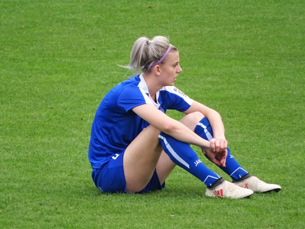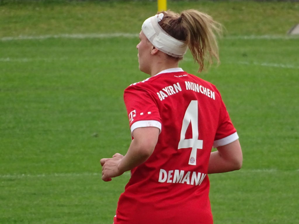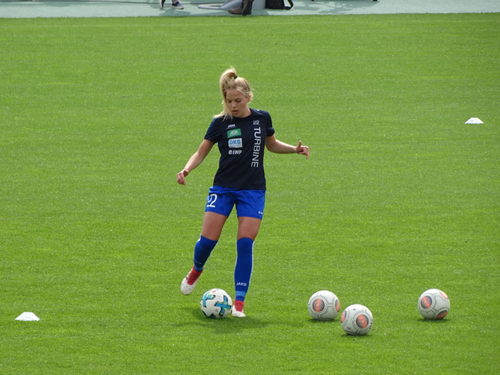 In der 3. Minute dann plötzlich ein Lattenknaller für Bayern, ein erstes Signal drohender Gefahr. Und kein Maskottchen weit und breit, an das man sich hätte festklammern können. Dann folgte eine längere Verletzungspause, als eine Turbine (Nina Ehegötz) und eine Ex-Turbine (Kristin Demann) mit den Köpfen aneinanderprallten. Das erinnerte an das heißumkämpften Pyrrhussieg-Spiel gegen Frankfurt vor einigen Jahren im Karli. Noch dazu, weil dieselbe Schiedsrichterin wie damals die Pfeife bediente.