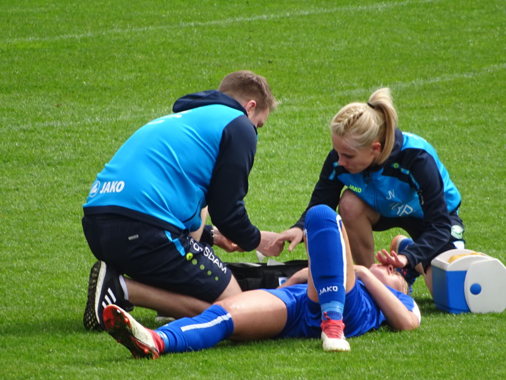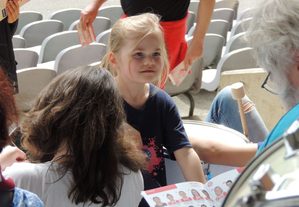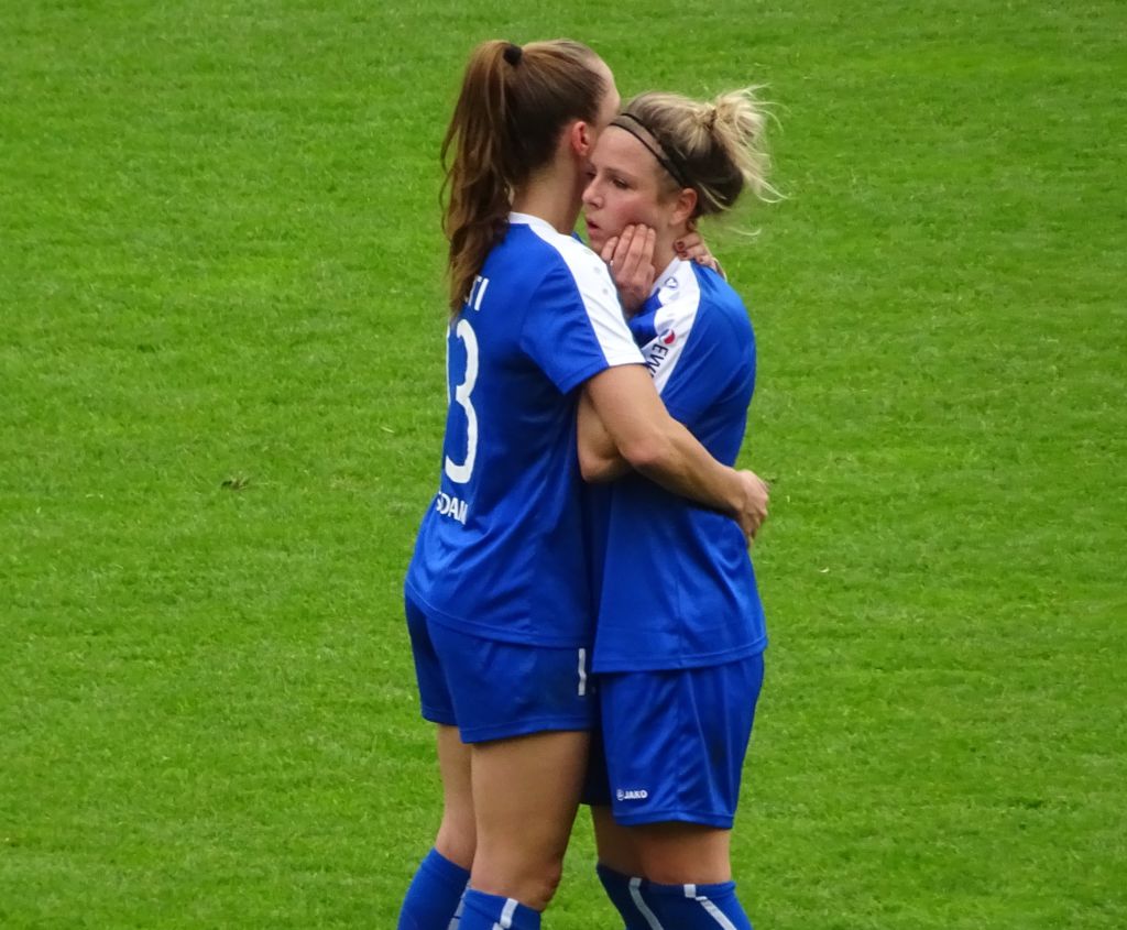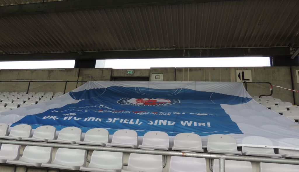 Etwa 10 Minuten wurde beidseitig in Unterzahl weitergespielt, bis beide Spielerinnen mit bandagierten Köpfen auf den Platz zurückkehrten. Dann war die Zeit reif für ein Tor. Ein Abstaubertor durch Leonie Maier. Die bayrische Folklore-Tormusik ertönte – und die Potsdamer Fans trommelten optimistisch auf ihren fünf vorher angemeldeten Trommeln dagegen. Sie hätten den Optimismus auch gern mit Fanfaren und XXL-Ratschen unterlegt, aber diese allgemeine Gewohnheit widerspricht dem bayrischen Regelwerk.
