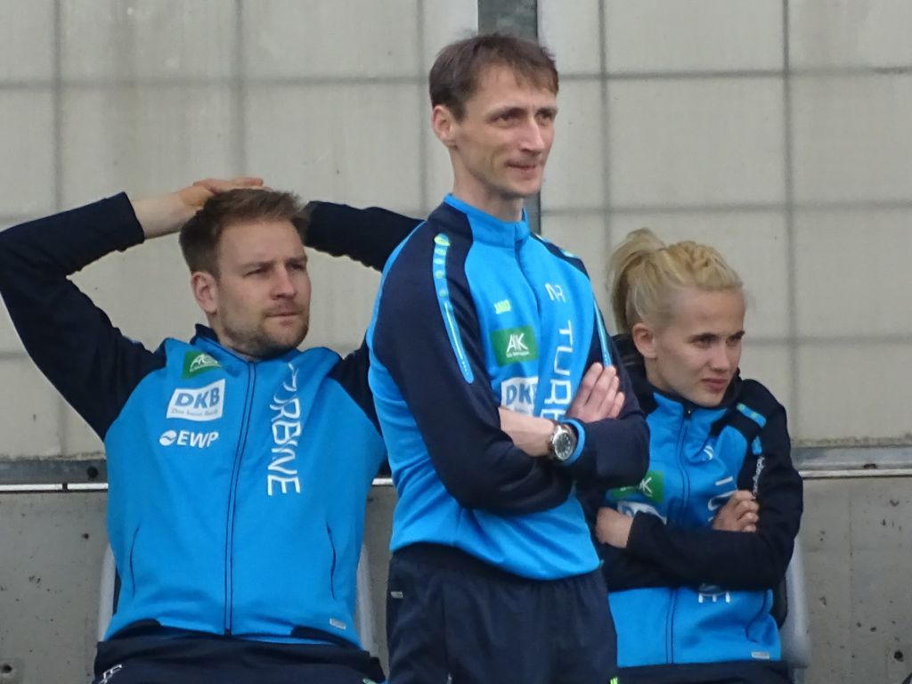 Die bayrischen Fans wurden unmittelbar als lautstarke Wesen zur Kenntnis genommen. Der Stadionsprecher ließ das tempoangemessene Mitsprechen der Spielernamen bei der Mannschaftsaufstellung wieder einmal nicht zu. Vielleicht gibt es auch dazu eine Regel? Na ja, zum Glück durften die Turbinfans bei anderen Auswärtsspielen eine herzliche und respektvolle Gastfreundschaft genießen.