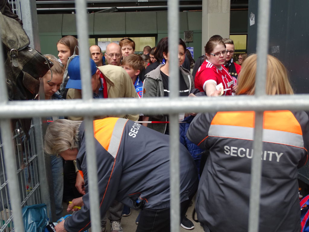 Ein Auszug: Rucksäcke und Taschen, die größer als ein DIN A-Blatt sind, dürfen nicht ins Stadion hinein. Trommeln, die unten offen sind, sind gestattet. Eine Aussage zur Mitnahme von Fanfaren blieb ungeregelt? Na ja, „unten offen“ waren sie ja… Und die XXL-Ratschen, was war mit diesen?