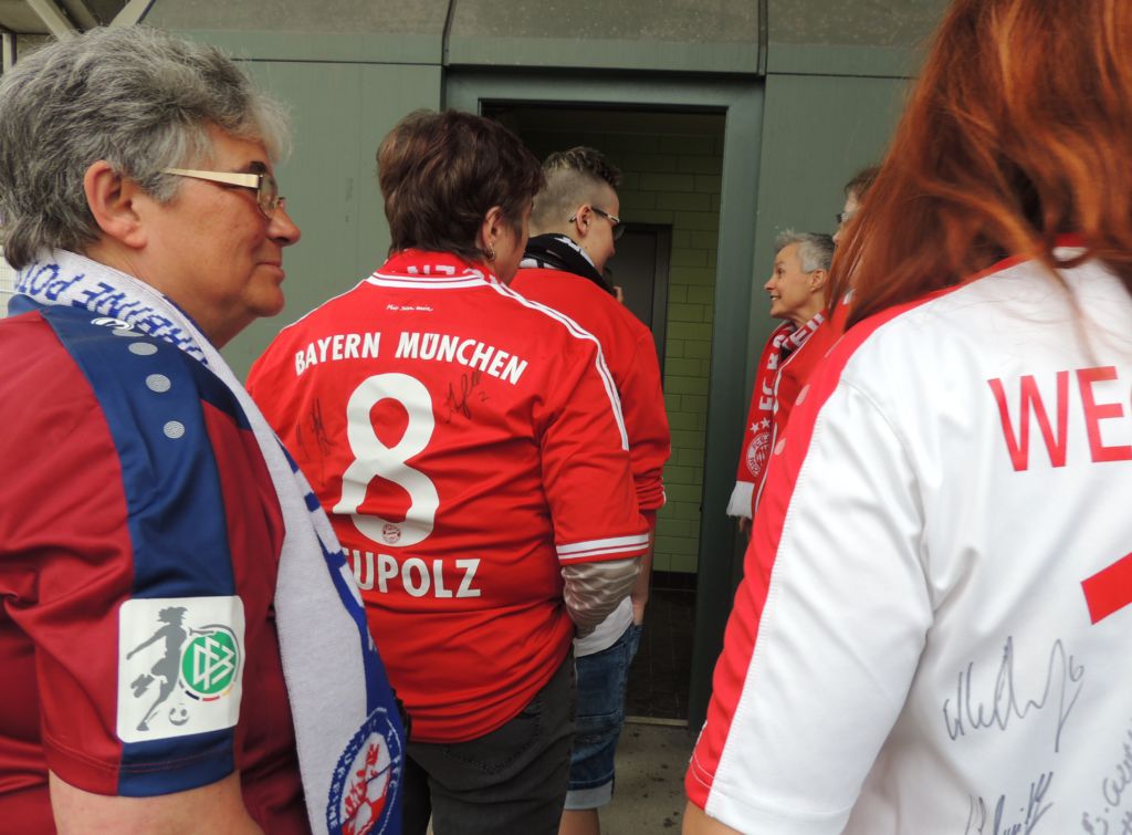 In der Halbzeitpause begann der Run auf die fast an einer Hand abzählbaren Damentoiletten, sodass diesmal notgedrungen kollektiv der „Toiletten-Tortrick“ ausprobiert wurde. Und er klappte sogar: Noch auf der Toilettenbrille verharrend, ertönte in der 47.Minute ein erneuter Torjubel.