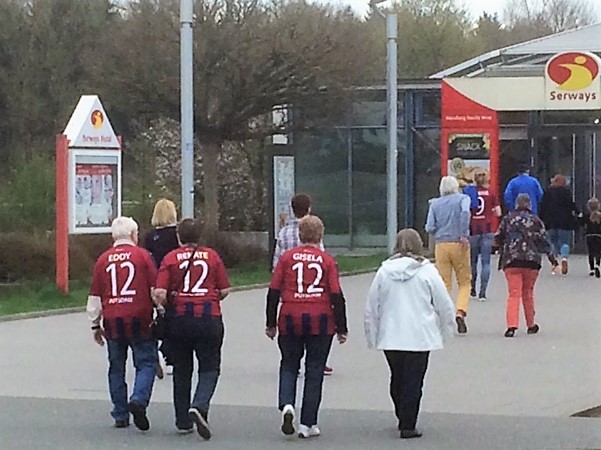 Also lud der Fanbus direkt vorm Grünwalder Stadion knapp 40 wohlgestimmte Fans aus, die aufgeklärt klitzekleine Stoff- und Plastiktütchen bei sich trugen. Und weitere 100 Fans gesellten sich aus den umliegenden Ortschaften dazu oder entsprangen alternativen Verkehrsmitteln wie Flugzeug, Zug oder Auto.