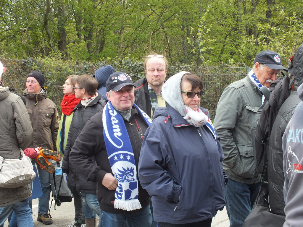 Der Fanbus war überpünktlich zwei Stunden vor Spielbeginn am Ziel, sodass die Fans nach Stadionöffnung ausgiebig das angekündigte Familienfest genießen konnten. Dieses gestaltete sich in Form einer Allianz-Hüpfburg für Kinder, einem gelben MC-Café-Auto, mit bunten Luftballons geschmückt – ohne Kaffeeausschank – und 1€ Pfand auf labbrige Wegwerf-Plastikbecher am Bierwagen, was aber ungewöhnlich effektiv zur Sauberkeit im Stadion beitrug.