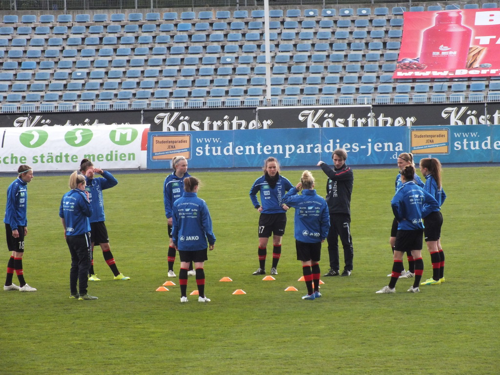Im gesamten Spiel gab es eine einzige Torchance für Potsdam, obwohl die Torhüterin aus Jena nur 1,61m maß! Auf dem Spielfeld entstand ein Nichts. Jena war grundsätzlich einen Tick schneller, was gewonnene Zweitkämpfe und Abspiele betraf. Eine Passgenauigkeit und Spielfluss kamen auf beiden Seiten eher selten zustande, jedoch gelang es Jena schmerzvolle drei Male, unsere Torhütern Haeberlin zu überwinden.