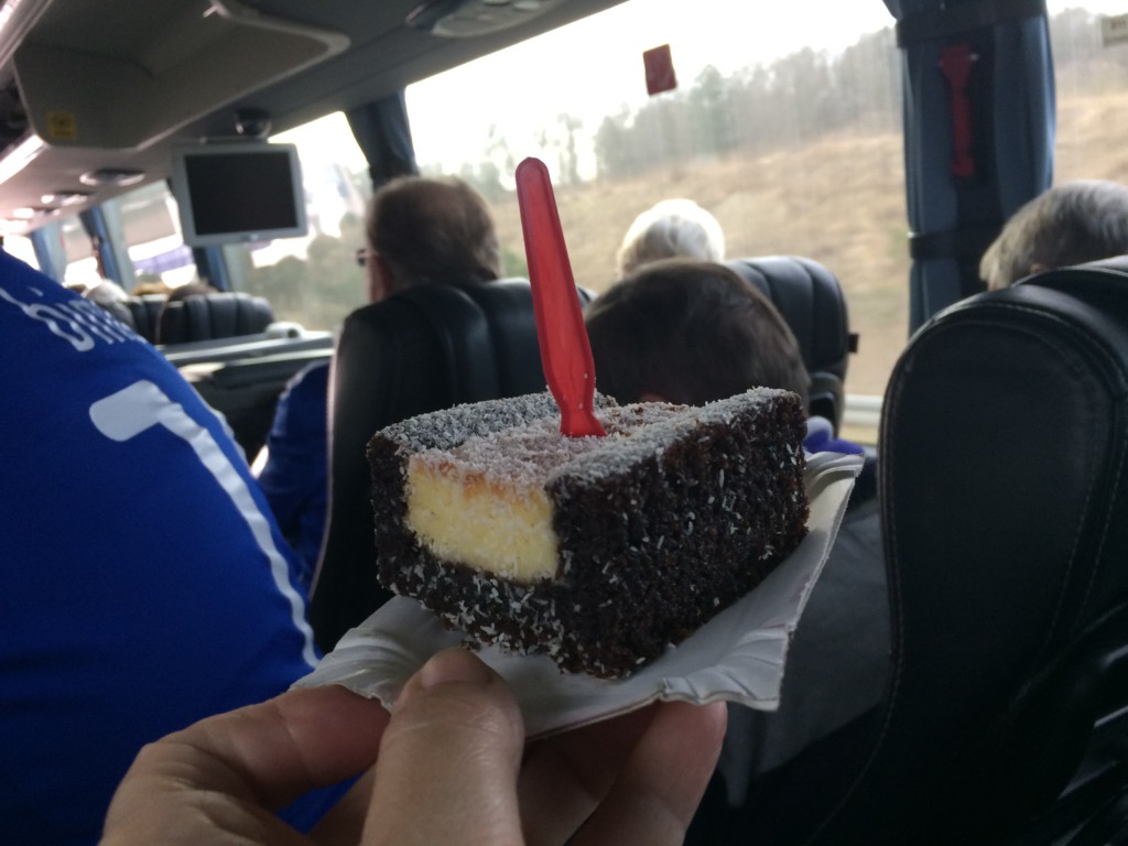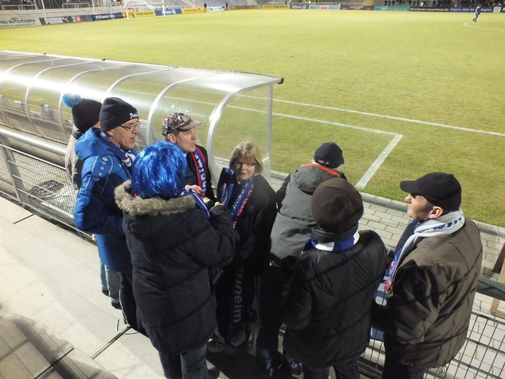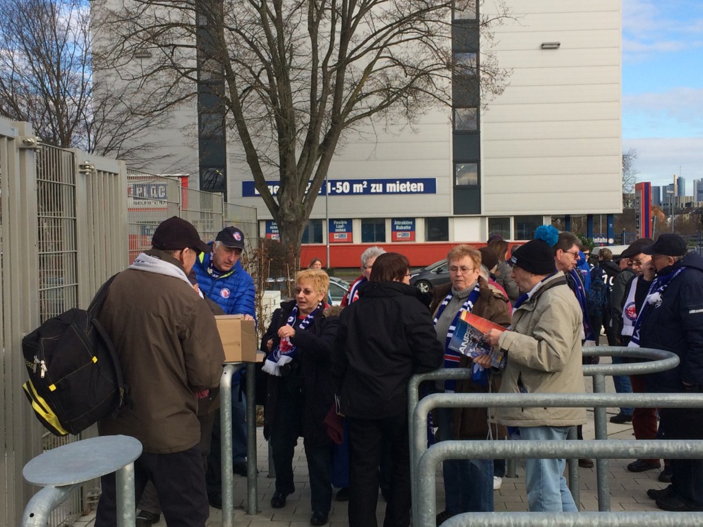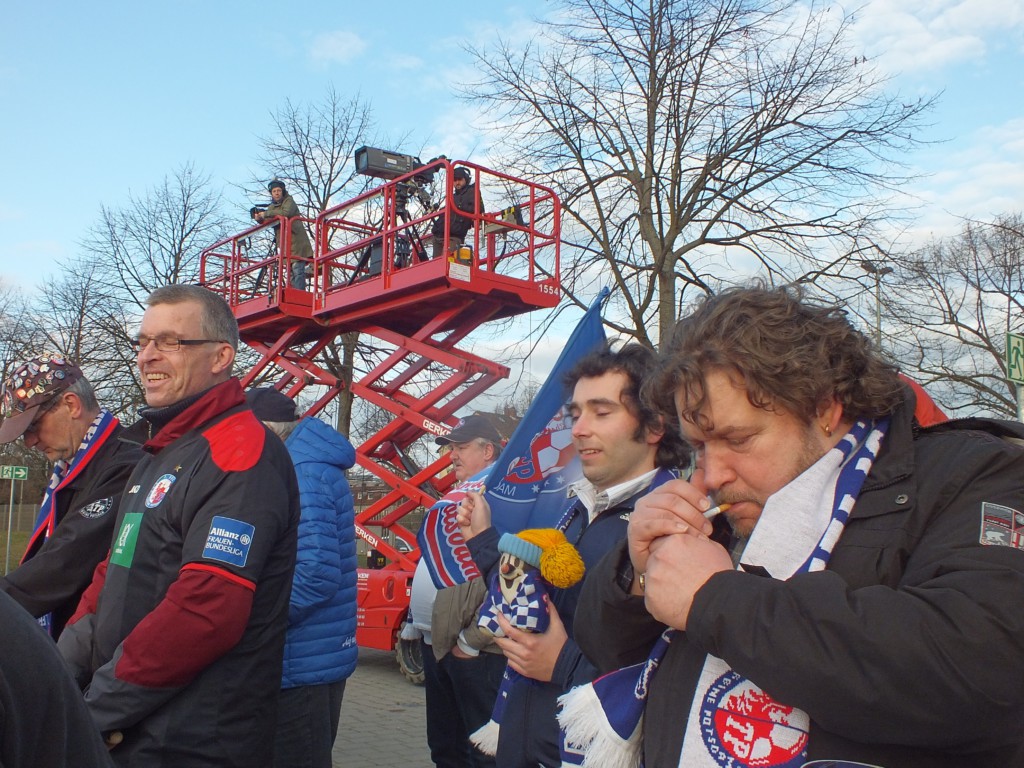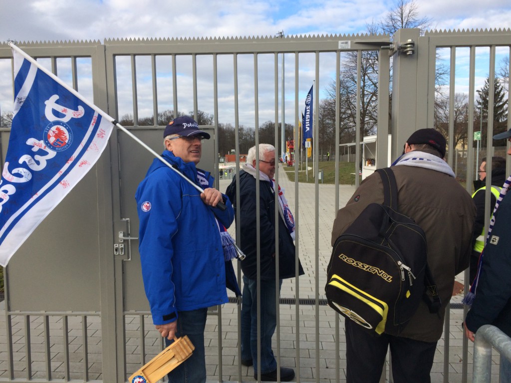 Eine feuchtfröhliche Anreise führte dazu, dass die Busfahrer über die aktuelle Wasserstandsmeldung der Bordtoilette informierten und einen Warnhinweis senden mussten. Die mitreisenden Bierkästen wurden rasant schnell geleert, da sich aufgrund der Winterpause die Geburtstagskinder und deren Geburtstagslagen aneinanderreihten und teilweise auf Wartelisten für die kommenden Fanbusfahrten verbannt werden mussten. Ein Jubilar an Bord versorgte einige Insassen mit leckerem Frühstück und Geburtstagskuchen. Rundum eine erlebenswerte Hinreise in prächtiger und ausgelassener Stimmung. Immerhin konnte man diesmal ausgeschlafen in den Bus steigen, der erst gegen 9.00 Uhr ab Potsdam startete.