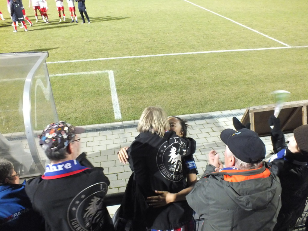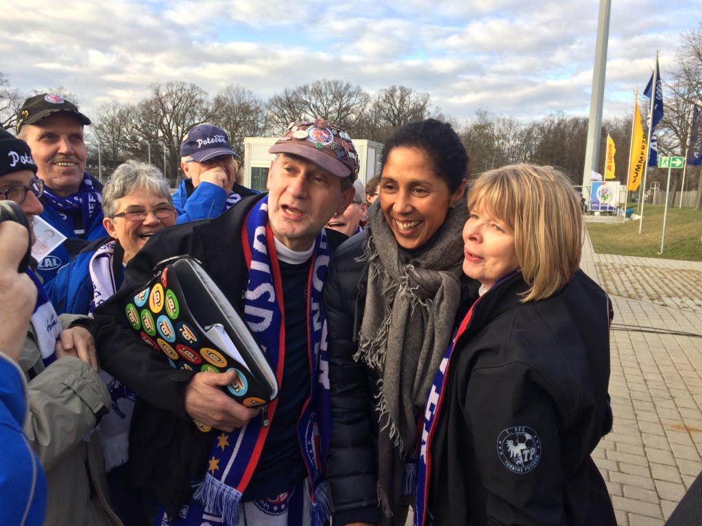 Auch die Nationaltrainerin Steffi Jones ließ es sich nicht nehmen, vor ihrer Abreise in die USA zum „SheBelieves Cup“ die Turbinefans persönlich zu empfangen und hinterließ auch prompt bei Facebook ein euphorisches Selfie mit einer jubelnden Turbinefans-Meute im Hintergrund.