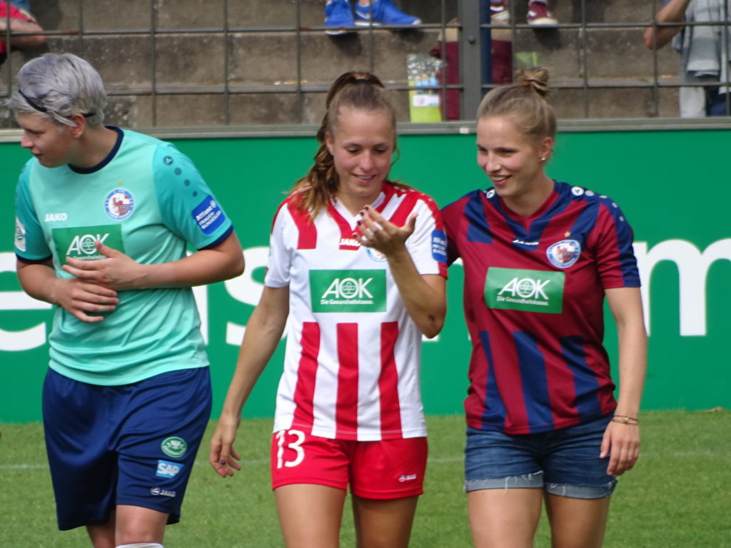 Die Abschiedszeremonie vor Spielbeginn zeigte Wirkung: Völlig von Sinnen, emotional umdisponiert, klingelte es bereits in der 3.Minute in Lisa Schmitz‘ Tor. Leider. Gedankenverloren.