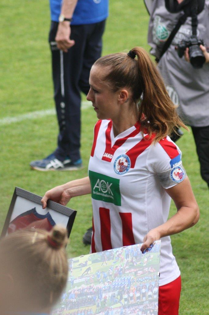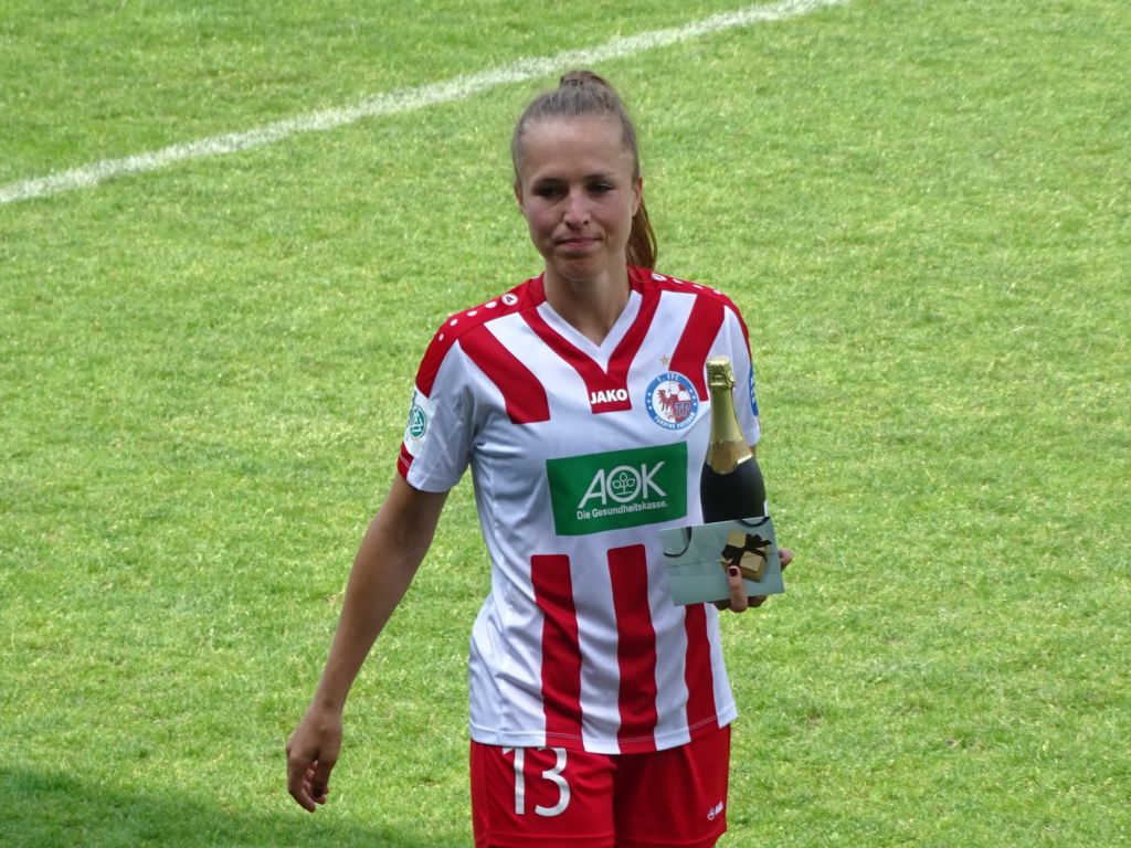 Tabea Kemme, die vereinstreue Stamm- und Nationalspielerin, derzeit verletzt, die nach 4383 Tagen Vereinszugehörigkeit den Verein in Richtung Arsenal London verlässt.