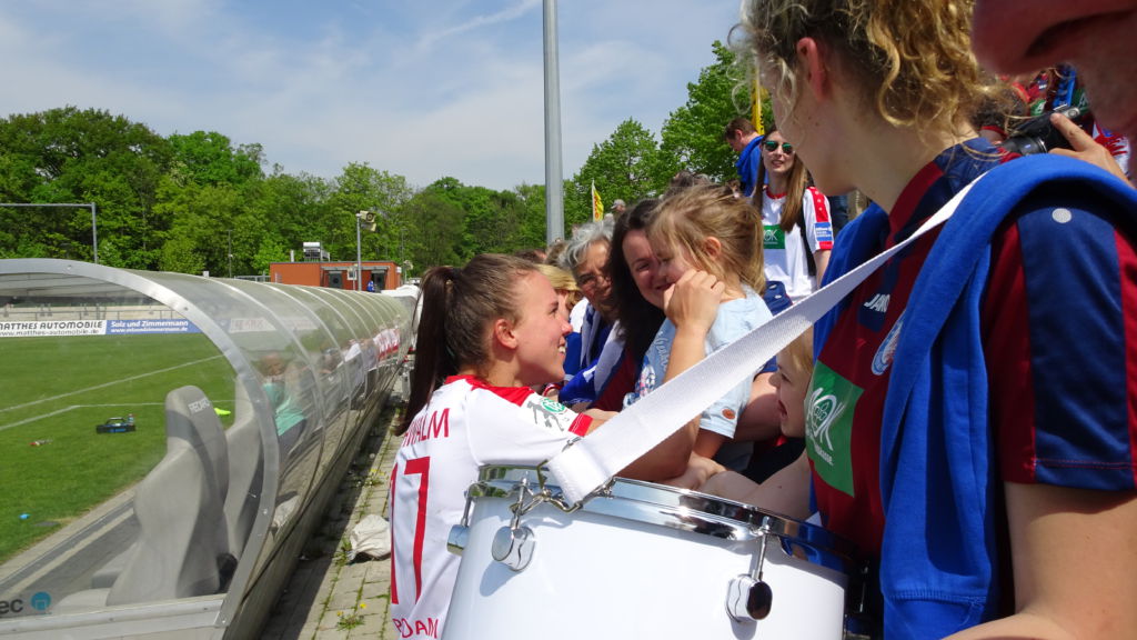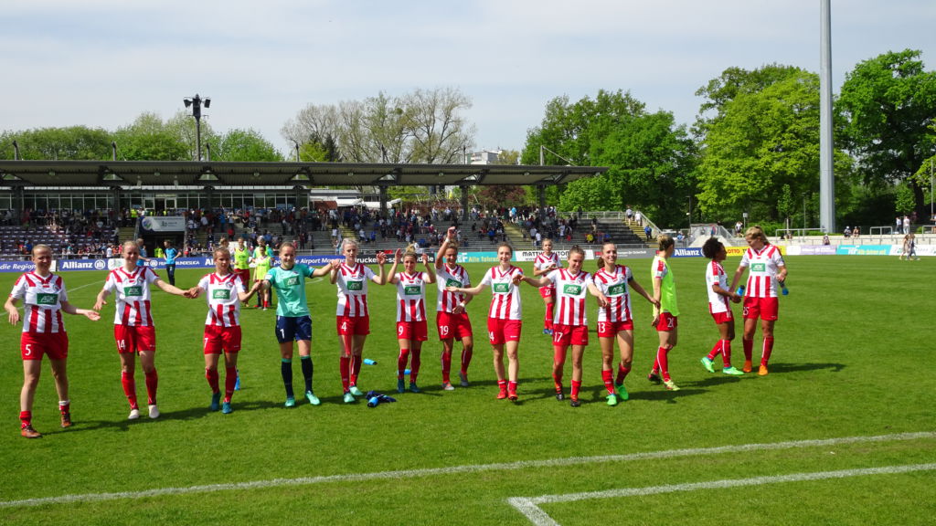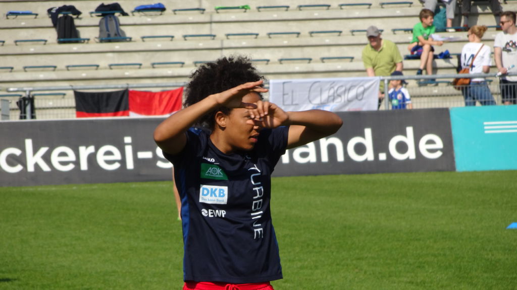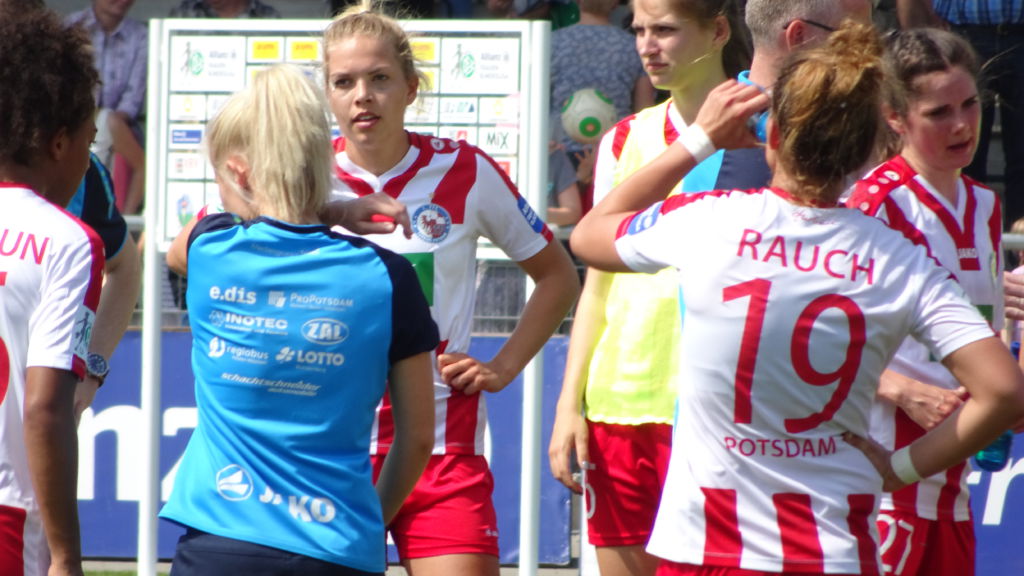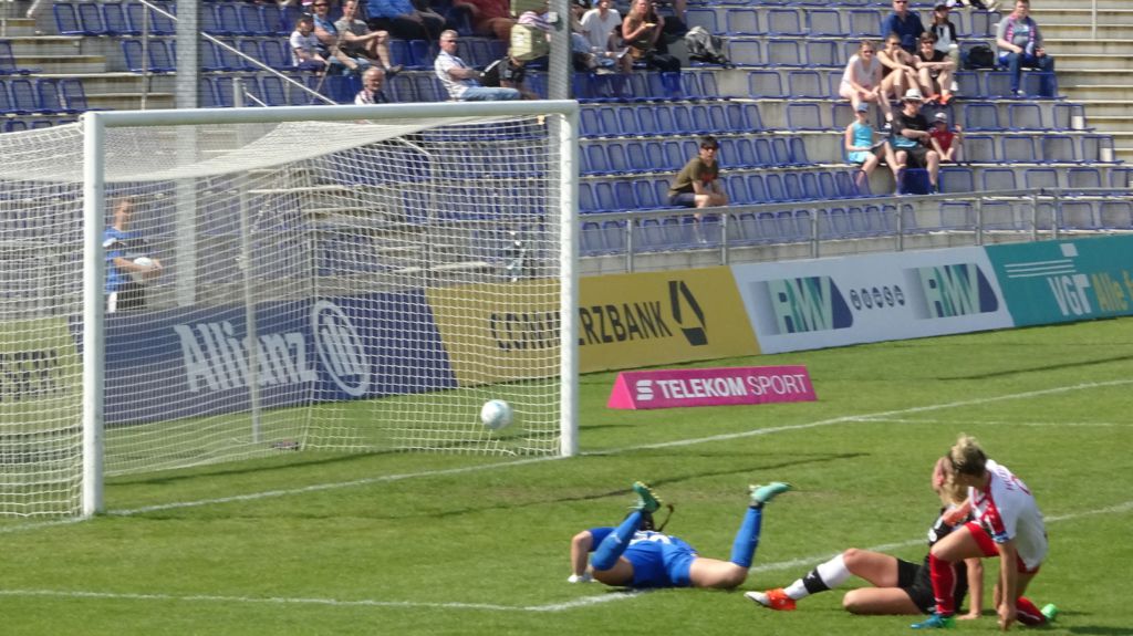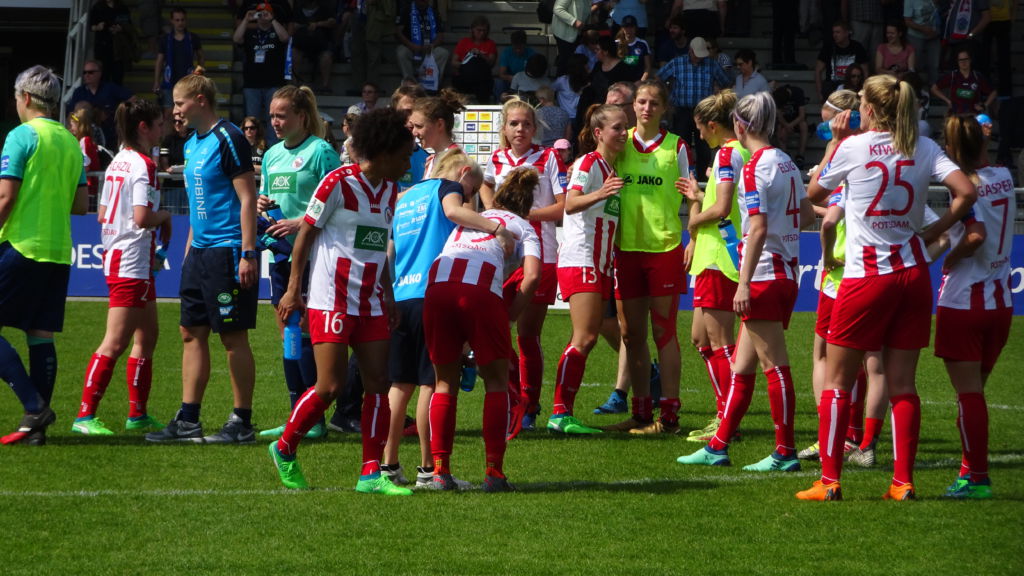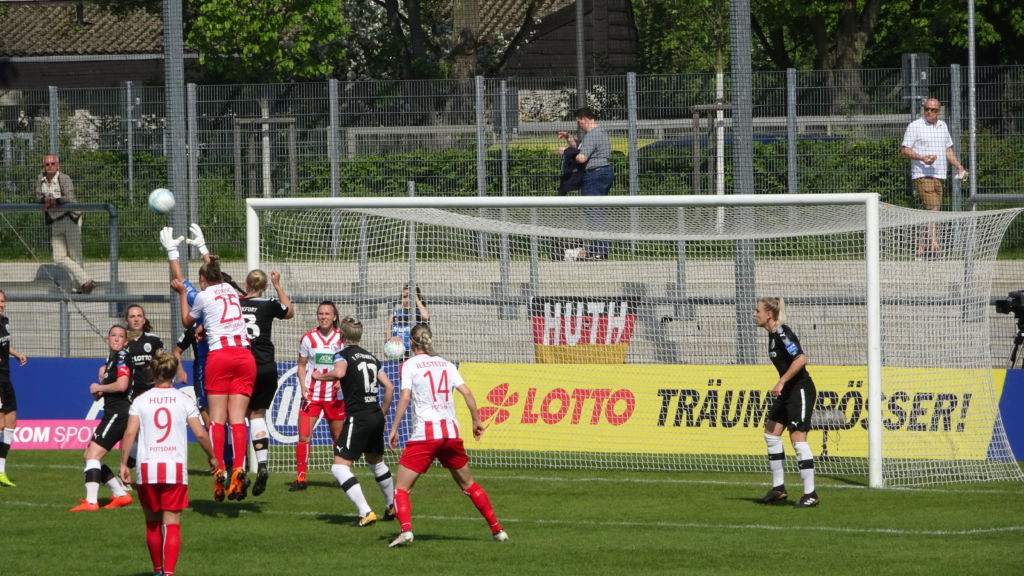 Aber der Hauptgewinn blieb nicht liegen. Die drei Punkte, die nahm Potsdam trotz 11 unverwandelter Eckbälle und unfruchtbarer Freistöße und nervenaufreibender 100%-Torchancen mit. Denn es gab zum Glück unser „Dampflökchen“ Svenja Huth, die wie schon am vergangenen Mittwoch gegen Freiburg das Siegtörchen schoss.