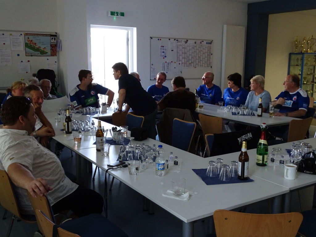 Warm war’s, nein, kochend heiß – im Saal und im Herzen. Nach dem Kälte-Test im „Karli“ mit einem hübschen 2:0-Sieg gegen Hoffenheim sollte der nächste Höhepunkt an diesem zweiten Advent folgen. Knapp 50 Fans und ca. 30 Spielerinnen nebst „Hintermannschaft“ sowie ein Hund… teilten sich Tische, Tresen und Buffet. Zum Ende des Jahres nahm man sich Zeit für nette Gespräche, Autogramme, Fotos, Geschenke und für das Denken an andere.