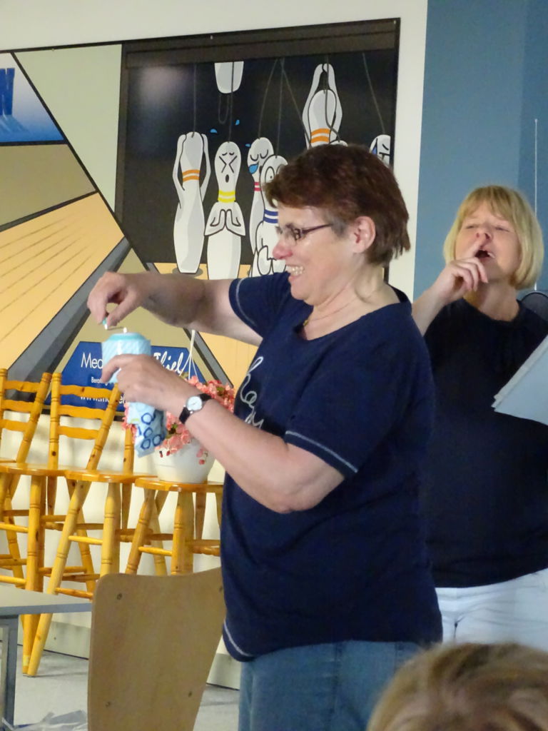 Knisternde Stille, eine Turbine-Weihnachtsgeschichte wird erzählt, die von Hirsch Heinrich und dem Rentier Rudi mit der roten Nase handelt, doch plötzlich schießt Tabea Kemme von ihrem Platz hoch und zeigt eine Torjubel-Geste. Insgesamt fallen in „Krissels Partyhaus“ zu Potsdam innerhalb von 10 Minuten um die 25 Tore! Sensationell! Denn sobald eine Spielerin ihren in der Weihnachtsgeschichte eingepackten Nachnamen heraushörte, sollte sie von ihrem Stuhl aufspringen und torfrenetisch herumtanzen.