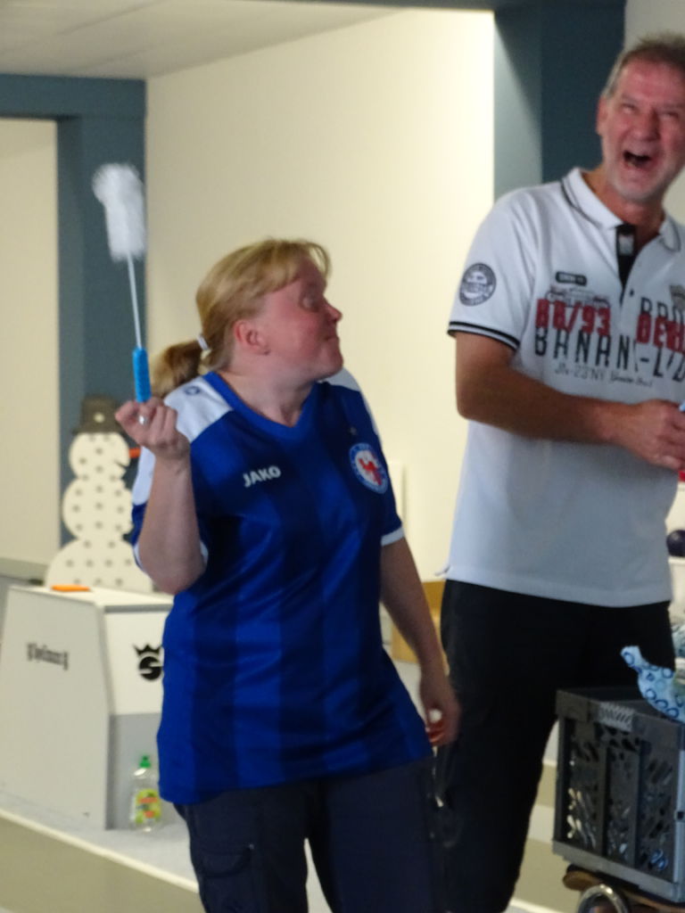 Der Fanclub überreichte an die Kapitänin Lia Wälti das mittlerweile bewährte Weihnachtsgeschenk, einen selbst erstellten XXL-Foto-Geburtstagskalender, der sicherlich wieder einen unübersehbaren Platz in der Mannschaftskabine erhalten wird. Außerdem ehrte der Fanclub mit zahlreichen Pokalen sportliche Leistungen der Spielerinnen, für die es gewöhnlich keine Pokale gibt. Bianca Schmidt, die im letzten Jahr noch beanstandet hatte, noch nie einen solchen besonderen Pokal erhalten zu haben, wurde z.B. für ihr Comeback in die Nationalmannschaft geehrt. Leider konnte sich aus Krankheitsgründen diesen erträumten Augenblick nicht genießen.