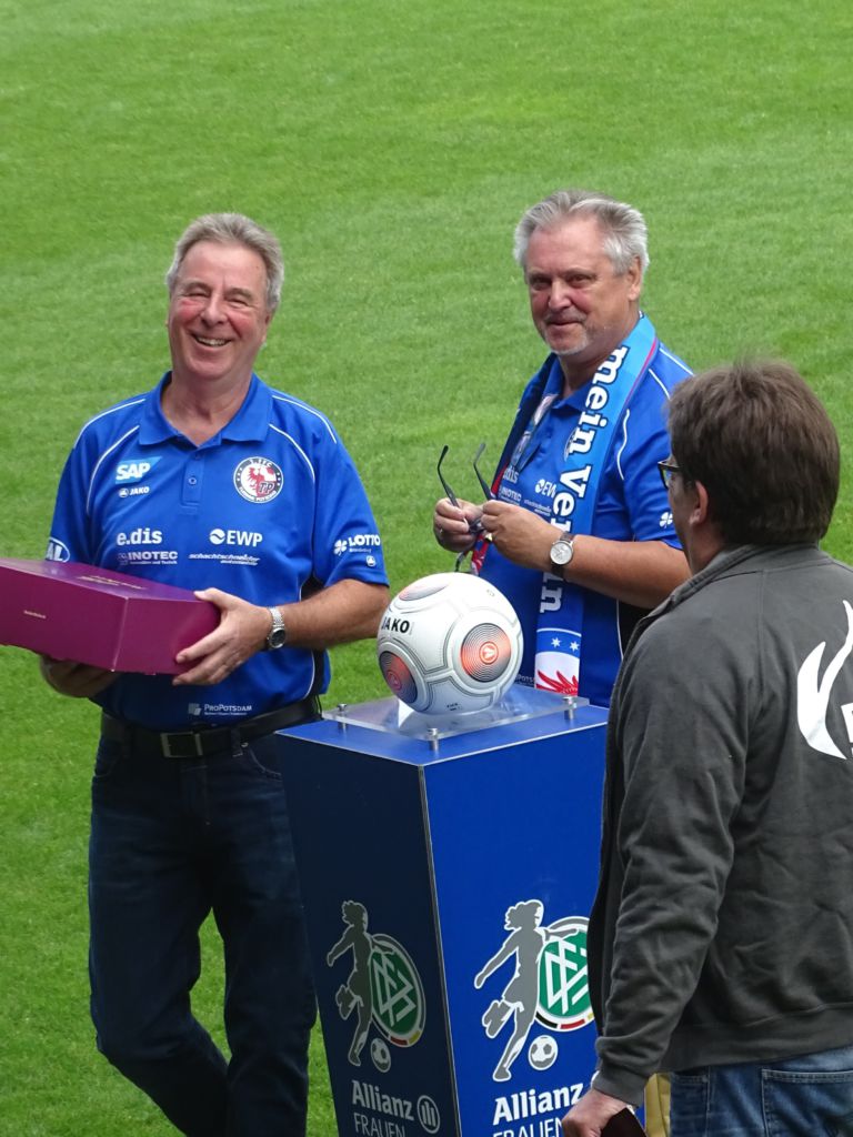 Damit gab sich Frank aber noch nicht zufrieden. Er bat die stellvertretende Kapitänin Feli Rauch um Sachspenden, die als beliebte Fanartikel versteigert werden könnten. Die Mannschaft von Turbine Potsdam ließ das Schicksal der Jenaerinnen nicht kalt. Sie spendeten Trikots, Kaputzenpullover der Nationalmannschaft, Handschuhe und signierte Fußballschuhe, die dann in Online-Auktionen an die Fans versteigert wurden.