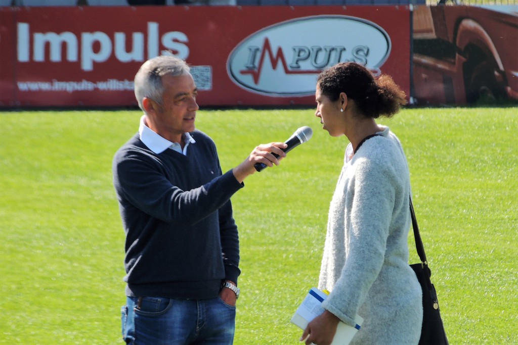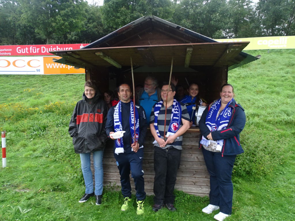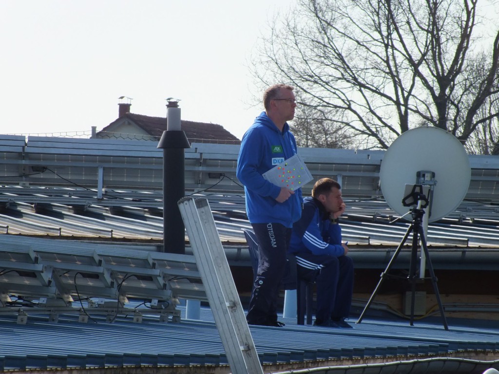 Ebenfalls gern gesehen und an dieser Stelle schreibend begrüßt seien zum einen die drei gesichteten Hoffenheimer Fans, stark bewaffnet und gut hörbar mit XXL-Glocke und Trommel, sowie das Sympathie-Trainierteam des „doppelten Jürgens“, Jürgen Ehrmann und Jürgen Grimm, die während des Spiels auch mal in einen verschmitzten Kurzdialog mit dem Fanblock traten.
