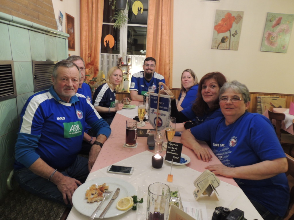 Abschließend versammelte man sich am Mannschaftsbus, den es demnächst nicht mehr geben wird, da ein Verkauf geplant ist. Auch das Pizza-Lieferauto war pünktlich zur Stelle.