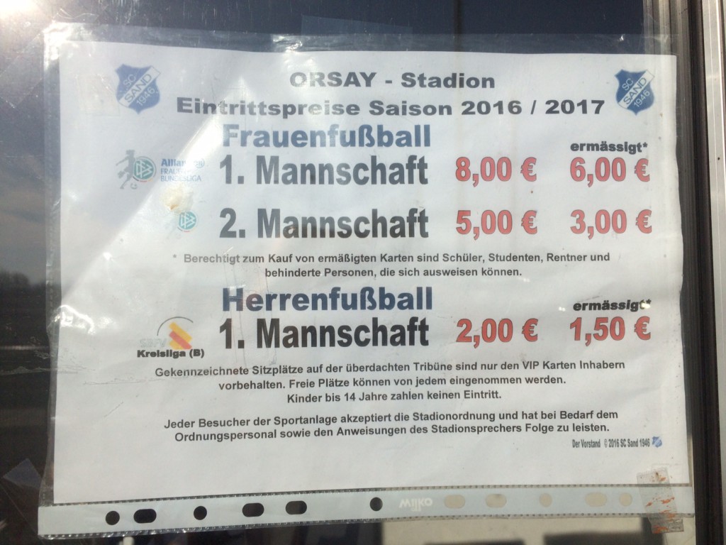 So konnten 8 treue Fans im „kleinen Schwarzen“ (dem Mannschaftsbus der U15) nach Sand reisen. Dank des übergroßen Vereinslogo auf der Karosserie eine Frauenfußballwerbung quer durchs deutsche Land. Am Steuer saß ein souveräner Fahrer namens Peter T., der die ganze Leihauto-Sache eingefädelt hatte. Da 1.500 km an einem Tag zu sportlich sind, startete die Unternehmung bereits am Sonnabend zur Mittagszeit und schloss eine Übernachtung ein.