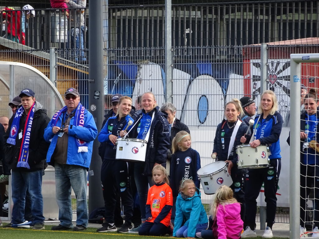 Als Dina Orschmann am Fanblock vorbeilief, um für die Einwechslung bereitzustehen, versprach sie, Gutes zu tun. Und sie hielt ihr Versprechen. In der 70. Minute sorgte sie nach einer ausgiebigen Pass-Stafette: Barth-Kössler-Cerci-Kössler-Holmgaard für den erlösenden Anschlusstreffer. Die Turbinefans konnten endlich die Blockfahne entrollen. Dina Orschmann nahm sich diese Jubelzeit nicht, sondern schnappte sich den Ball, damit ein schneller Anstoß erfolgen konnte.