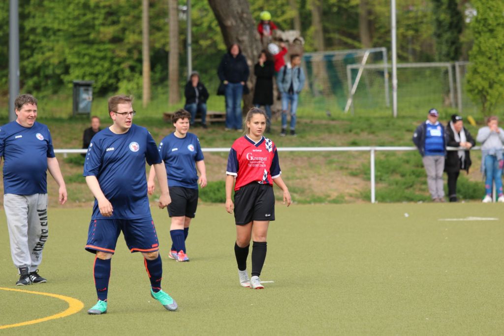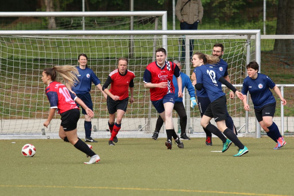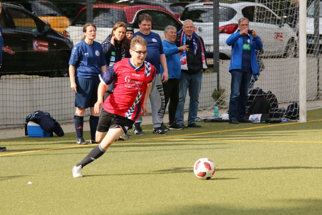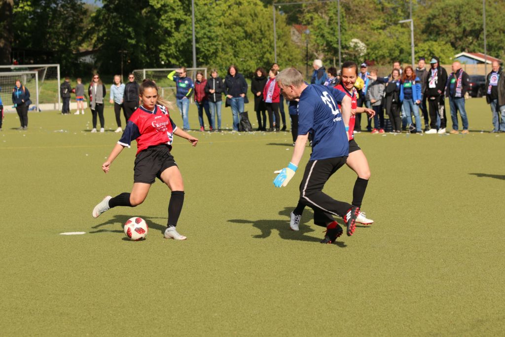 Und zack! Drei Minuten später war soviel „Wind im Motor“, dass Gina (reimt sich auf Dina) Chmielinski nach einem Querpass von Kössler den Ausgleichstreffer erzielte.