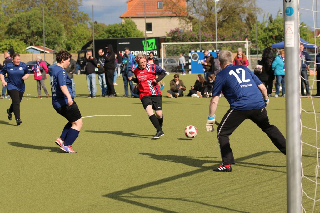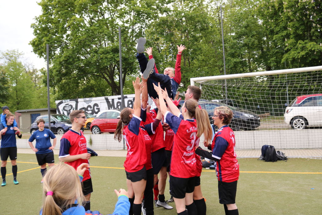 Am Ende blieben vier Nachspielminuten, die überwiegend die Gäste angespart hatten. Sozusagen als Gastgeschenk. Potsdam nahm dieses dankend an. Zum einen, damit Luca Graf auch noch ein bisschen mitspielen durfte und zum anderen, dass Nina (reimt sich auf Dina und Gina) Ehegötz endlich zu ihrem ersten Saisontreffer kam. Nach einem wunderschönen Assist von Cerci zielte sie in die linke Ecke und erhöhte damit den Heimsieg auf ein 4:2. Und weinte danach erlösende Glückstränen.